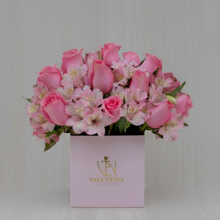 Hermoso arreglo floral con 12 rosas rosadas en caja de valentina floristeria , perfecto para ese cumpleaños tan especial.