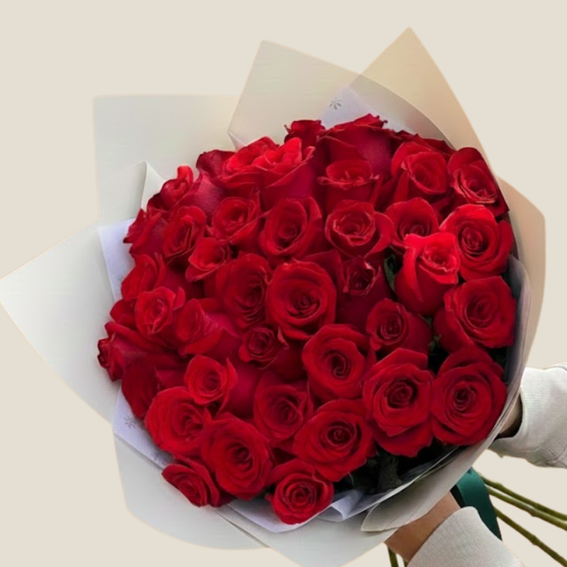 ¡El regalo ideal para una ocasión tan especial! Un hermoso ramo floral de 40 rosas rojas .