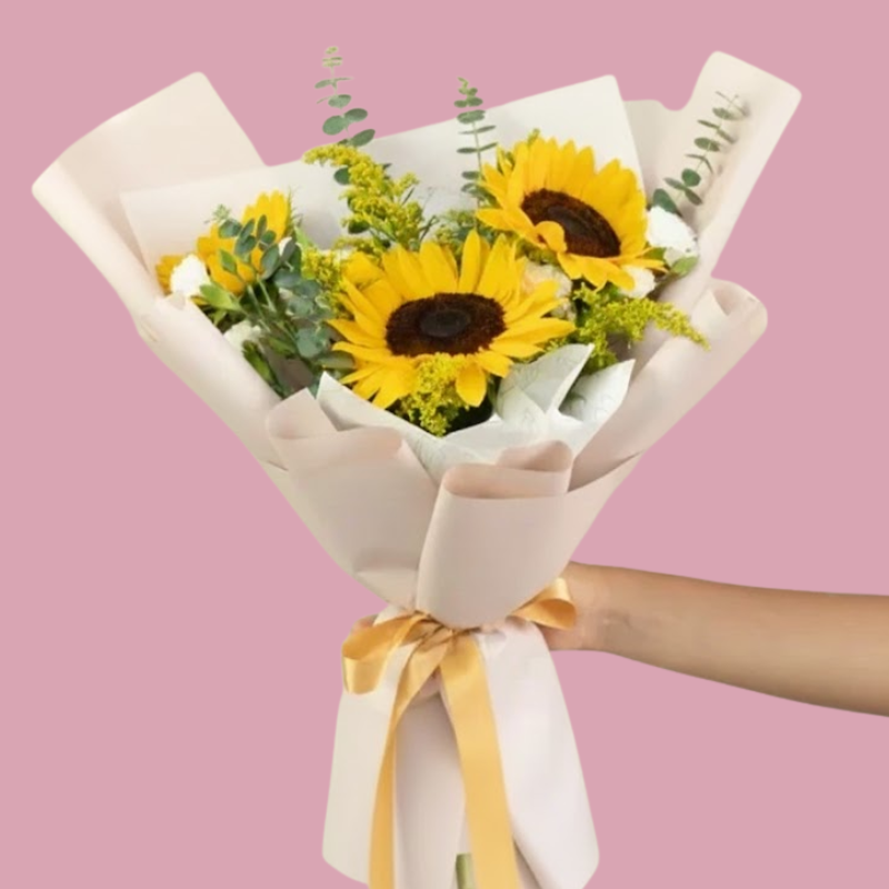 Demuestra tu cariño con este hermoso ramo de 3 girasoles. Es perfecto para demostrarle ese amor incondicional. ¡Regala este detalle ideal y celebra cualquier ocasión especial!
